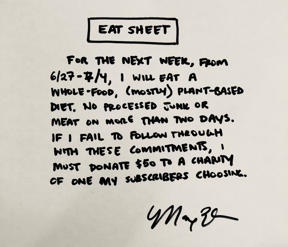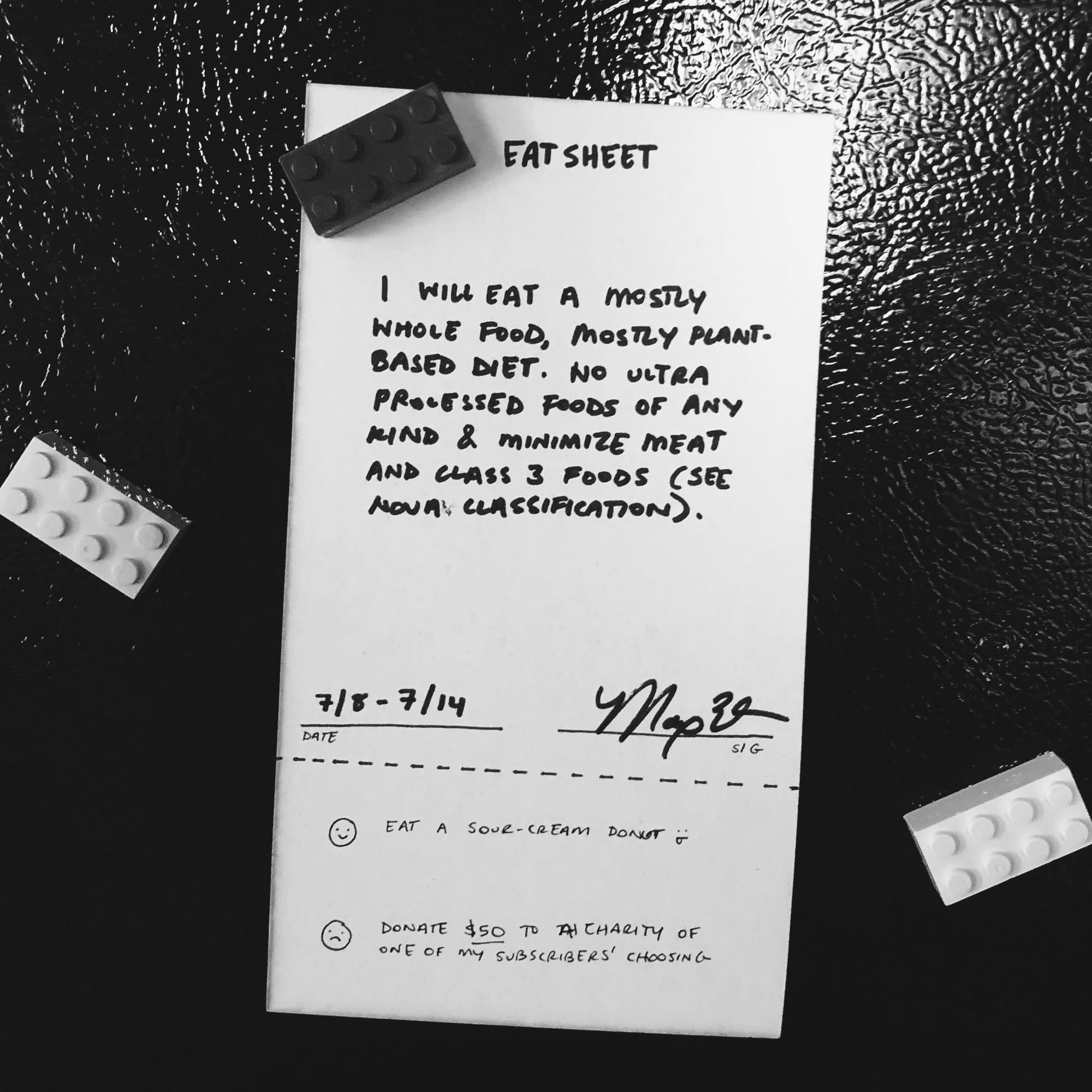 Eat sheet V2. Includes a space for both a penalty and reward for follow through. Sour cream donut.. IYKYK 😋